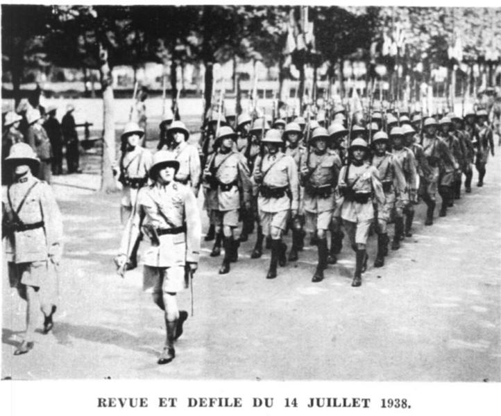 Caption on support : REVUE ET DEFILE DU 14 JUILLET 1938. (Review and parade on 14th July 1938)