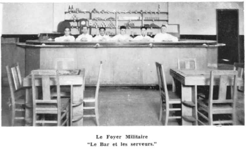 Caption on support : Le Foyer Militaire 'Le Bar et les serveurs.' (The military hall 'The bar and its barmen')'