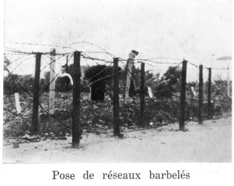 Caption on support : Pose de réseaux barbelés (The laying of the barbered wire fencing)