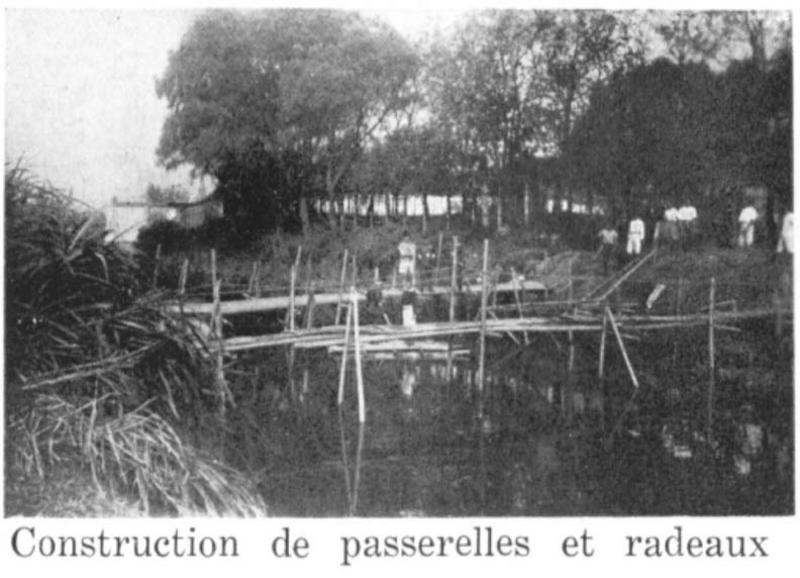 Caption on support : Construction de passerelles et radeaux (Building footbridges and rafts)