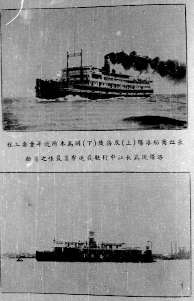 Caption on support : Changjiang shangchuan Luoyang (shang) ji Fuduo (xia) tong wei bensuo jinnian zhongyao gongcheng (The Luoyang (top) and the Fuduo (bottom) merchant ship in the Yangtze river both used for important projects in recent years) Luoyang xian wei Changjiang zho