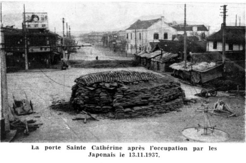 Caption on support : La porte Sainte Cathérine après l'occupation par les Japonais le 13.11.1937. (The Sainte Catherine's gate after the Japanese occupation, 13th November 1937.)