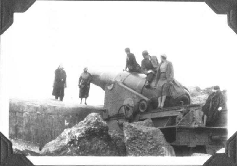 Civilians examining a canon