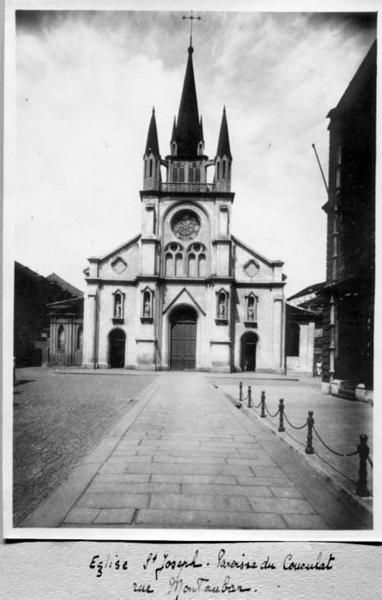 Caption on support : Eglise St Joseph. Paroisse du Consulat rue Montauban. This was the first church erected in the French Concession. The first stone was laid in April 1860 and the first mass was celebrated on 29 June 1861 (Joseph de la Servire, Histoire de la Mission du Kiangnan, Vol. 1, p. 80).