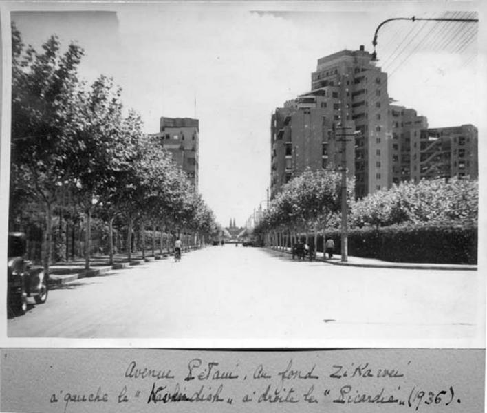 Caption on support : avenue Pétain, Au fond Zi Ka Wei à gauche le 'Kavendish' à droite le 'Picardie' (1936)'