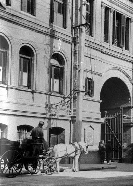 Keywords : horse;drawn-carriage;cart;building;people