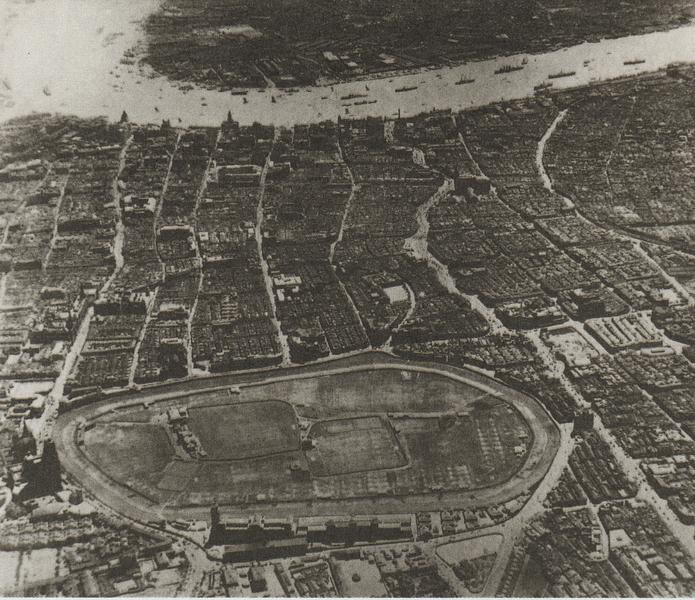 Information data : Race Course in the foreground and Huangpu River in upper image. Pudong is across from Bund in top of picture.