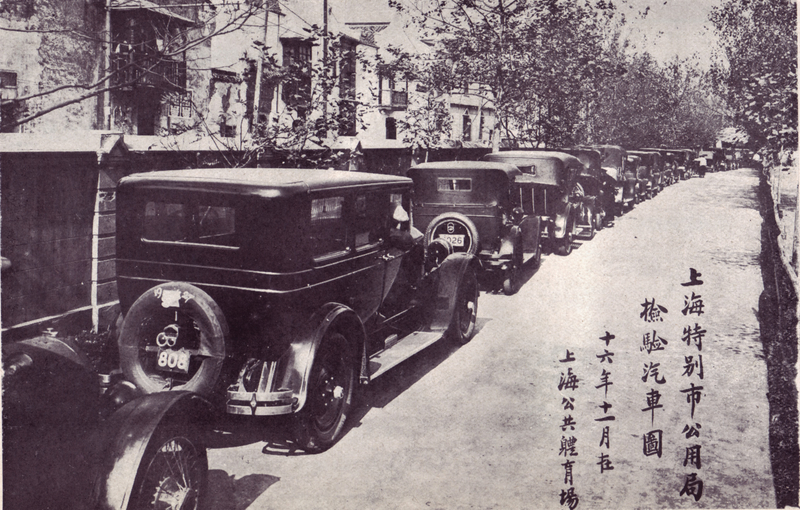 Caption on print : 上海特別市公用局檢驗氣車圖 十六年十一月在上海公共體育場