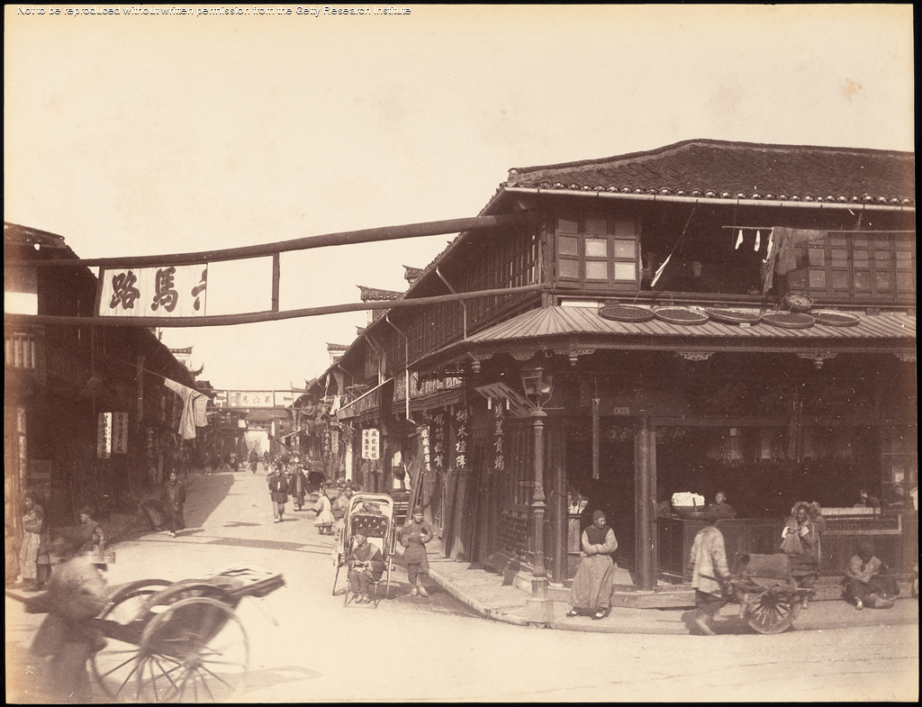 Information data : The picture was taken before or slightly after the name of Shanghai East-West streets were changed from numbers (1, 2, 3, etc.) to names of cities (except for "Canton" in English but "Guangdong" in Chinese) in 1865. Pakhoi road is the circular road at the bottom of the second race course.The section shown here however, is the short straight section between Chekiang and Fokkien roads.