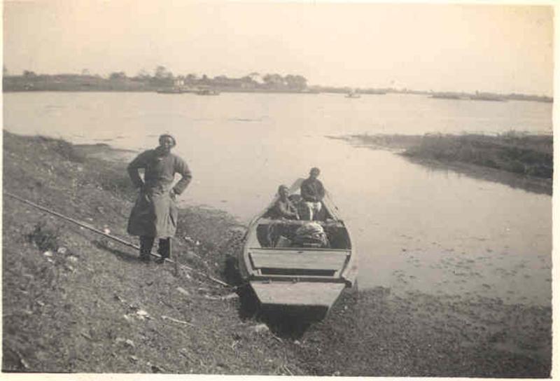 Information data : Picture taken during a boat trip along the Soochow Creek outside of Shanghai. Note one woman and her children on a boat.