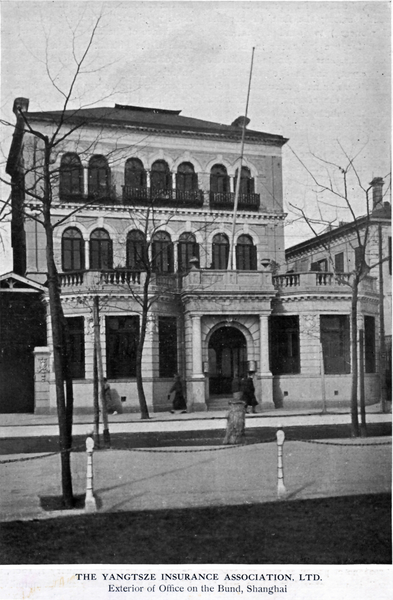 Caption on support : The Yangtsze Insurance Association, Ltd. Exterior of office on the Bund, Shanghai