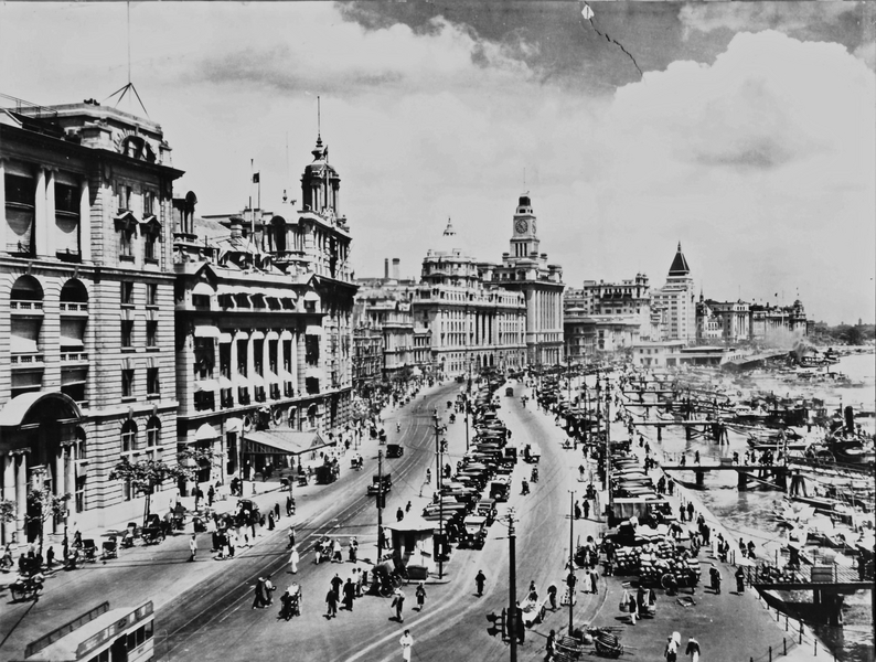 Caption on support : Plate 6 A panoramic view of the Bund, showing Bund foreshore and passenger landing jetties.