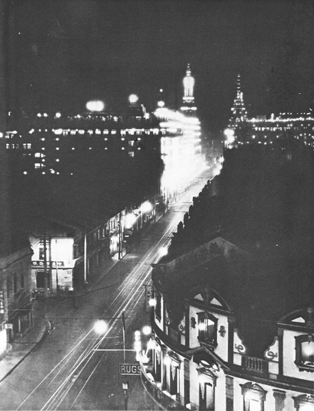 Caption on support : Shanghai's "Great White Way". A View of Nanking Road by Night.