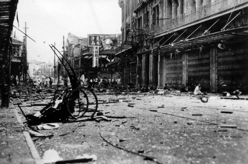 "Disaster, bringing death and mutilation to 800 noncombatants at Shanghai's busiest shopping intersection, struck the Settlement today when a large bomb or shell tore its way through the side of the Sincere Department Store to explode, the force wrecking even the Wing On Department Store across the street and making a bloody shambles of the whole immediate area. " (Bruce, Shanghai’s Undeclared War, 1937, p. 19)