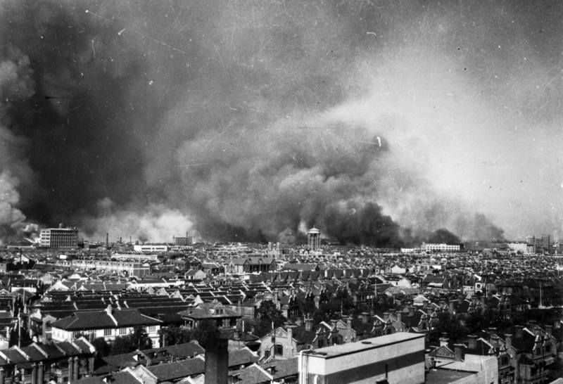 "In the night of October 26th to 27th , the Chinese troops withdrawed from Chapei burning everything. What was left did the Japanese and on October 27th the fire was 9 kilometers long: View from Medhurst-Apart."