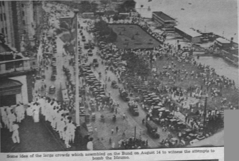 Caption on print : Some idea of the large crowd which assembled on the Bund on August 14 to witness the attempts to bomb the Idzumo.