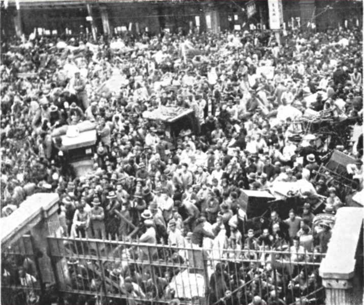 Refugees massed behind at the Porte du Nord iron gate (French Concession)