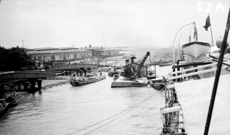 Keywords : Swire;junk;davit;derrick;hoist;crane;pier;warehouse;wharf;boat;Pudong;Pootung