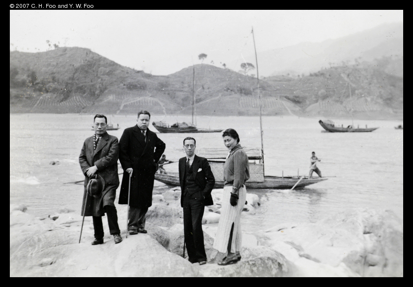 (left to right) Li Du-gong, Chen Qing-yun, Liang Tien-zhen, Wang De-zhen, at Guanyin Gorge, Beipei.