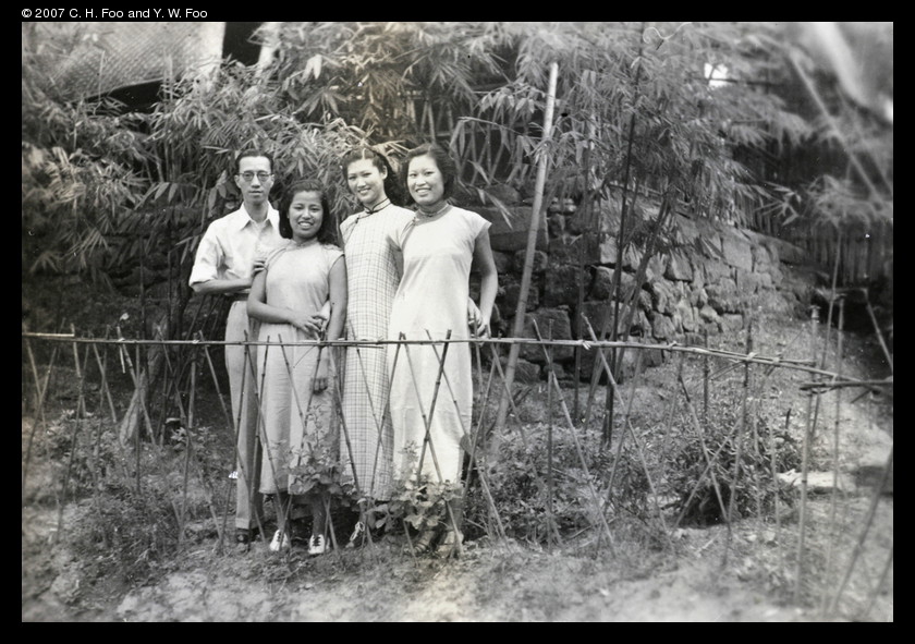 Caption on support : (left to right)梁天着, 張毓玢, 江芳苓, 張毓琦在獨石橋傅宅 1940