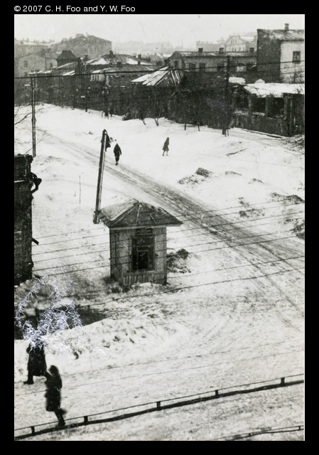 Snow scene of the Soviet wartime capital, Kuybeshev, shot from the Chinese Embassy.