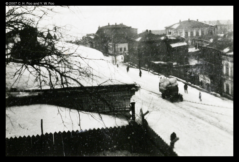 A view of Soviet Russia's wartime capital, Kuybeshev, shot from the Chinese embassy.