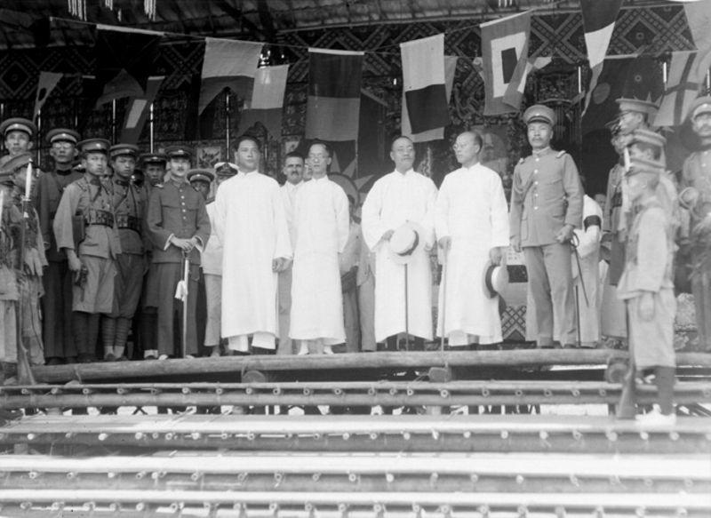 Second left, Wang Jingwei; third left, Hu Hanmin, second right, Wu Chaoshu.
