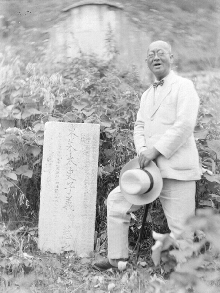 Title : A man beside a gravestone