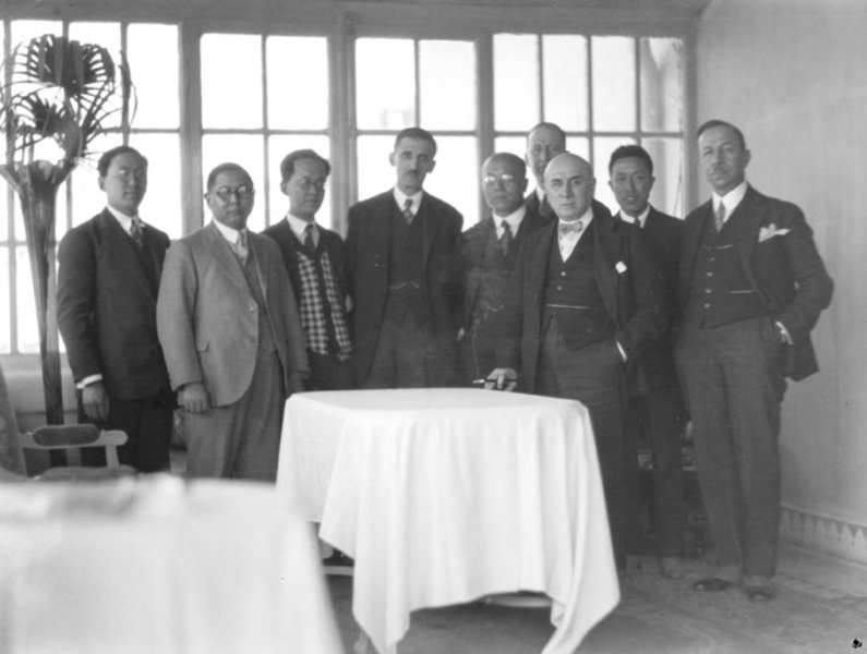 Sun Ke, second left; Hu Hanmin, third left; Wu Chaoshu, fifth left.