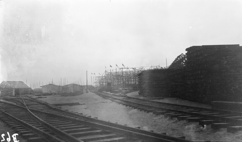 The Wangsha terminus (now called Guangzhou South) in Canton, of the Canton-Hankow Railway, under construction.