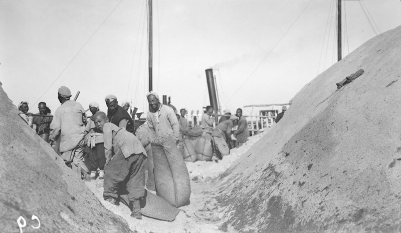 Title : Workers bagging salt at Hanku (汉沽)