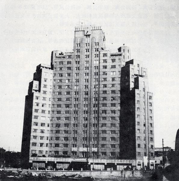 Information data : The Broadway Mansions (nowadays called Shanghai Mansions) is located at the meet of Suzhou Creek and Huangpu River. The 22-stories building was built in 1934 and was designed by the Ye Guang Estate Property Company. It belongs to architecture of modern style in the form of cubic boxes.