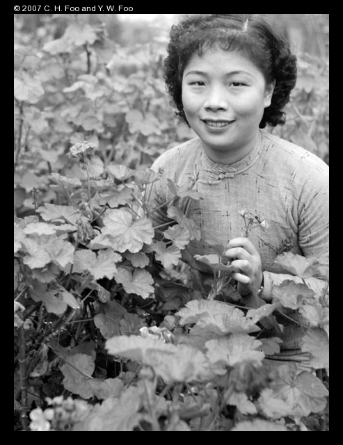 Title : Liu Shengyi posed with geraniums