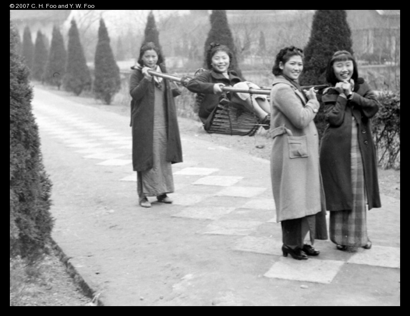 Min Chin, Jiang Fangling and Ma Xiuzhong carrying Liu Shengyi