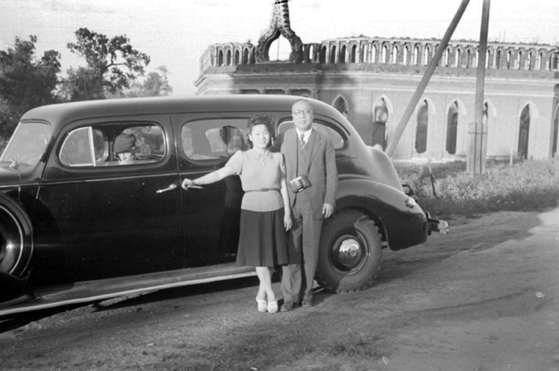Hu Zipang and Fu Bingchang, with car and driver, in U.S.S.R.