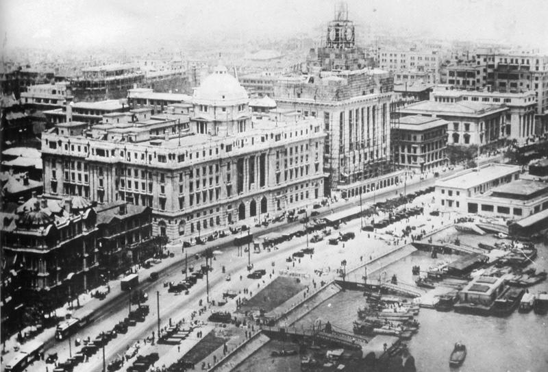 Information data : The Hongkong Shanghai Banking Corporation (Huifeng Yinhang): a four-storeyed building in Renaissance style with a large semi-circular terrace on the main entrance. It was built in 1865 in Shanghai and had a branch in Hong Kong too. It became one of the most important bank in Asia; due to its expansion, in the early 1920's it was pull down to build the new building, which opened its doors in 1923.