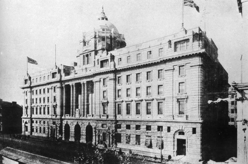 Information data : The Hongkong & Shanghai Bank (滙豐銀行 - Huifeng yinhang - HSBC) opened its Shanghai branch in 1865. It moved into its own building, designed by the architect William Kidner, on a site next to the Maritime Customs, in 1875. The modern building was completed in 1923. (Frank King et al., History of the Hongkong & Shanghai Banking Corporation, I: 94, 255.