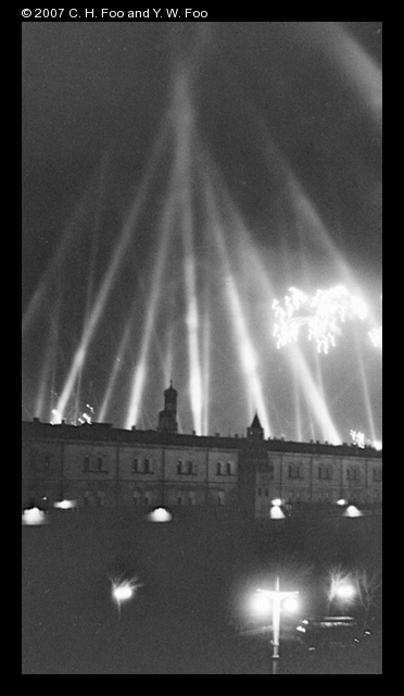 Keywords : Fu;Foo;building;fireworks;searchlight