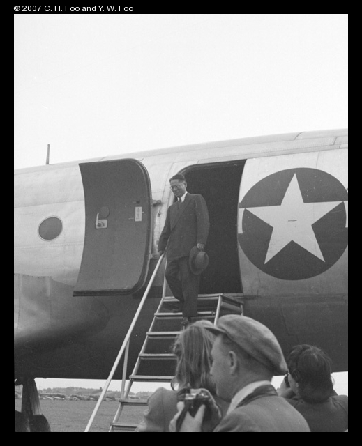 T.V. Soong disembarking US Airforce aeroplane, Moscow, 1945