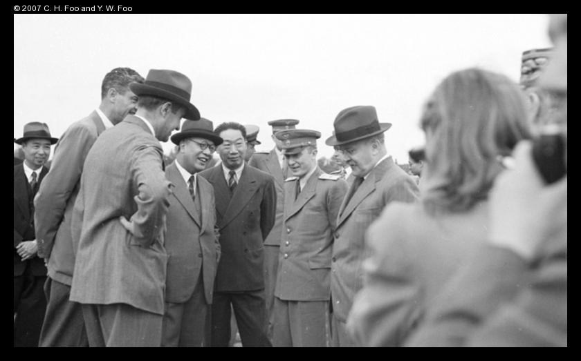 Group (including Fu Bingchang and Molotov) at airfield, Moscow, to greet T.V. Soong