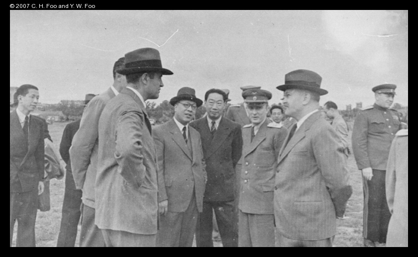 Molotov and officials, at airfield for T.V. Soong's visit to Moscow, 1945