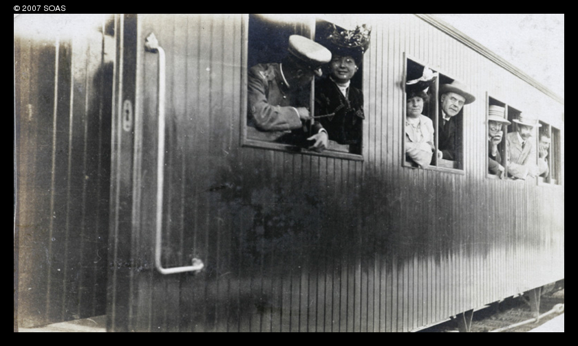 Caption on support : Departure of Tientsin Lawn Tennis Club Team for annual match against Peking Tennis Club at Peking. 1905.