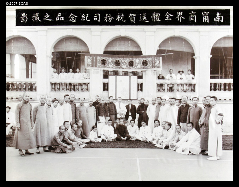 Caption on support : Presentation of Silver Bowl and Silk Scrolls to R.F.C. Hedgeland, Commissioner of Customs Nanning, Kwangsi, on 30th April 1921 by Nanning Chinese Chamber of Commerce.