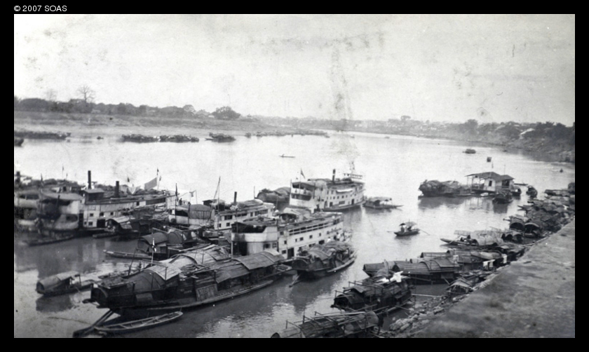 Caption on support : Motor Vessels and Cargoboats, Nanning, West River. Floating Examination Pontoon, Nanning Customs.