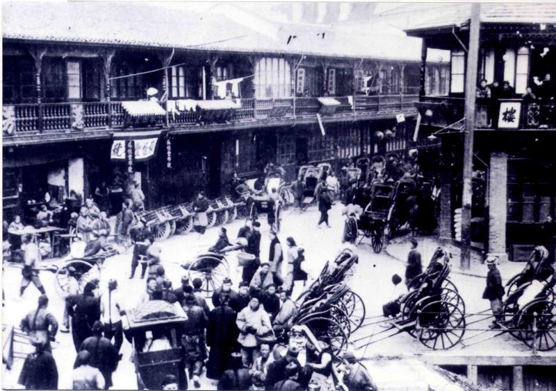 Keywords : rickshaw;pushcart;sedan;chair;building;street