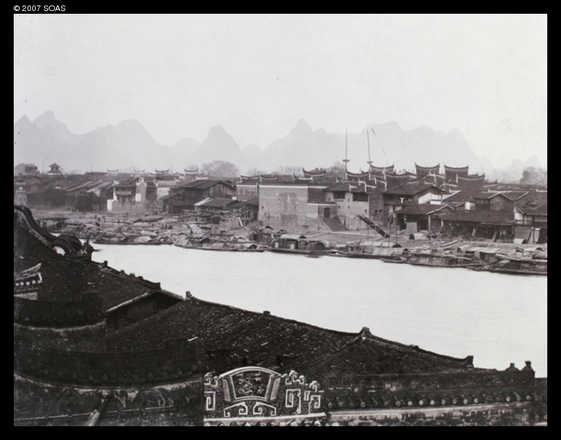 Keywords : CMCS;Chinese Maritime Customs Service;IMCS;Imperial Maritime Customs Service;boat;sampan;junk;hill;rooftops;karst;landscape;scenery;Guilin