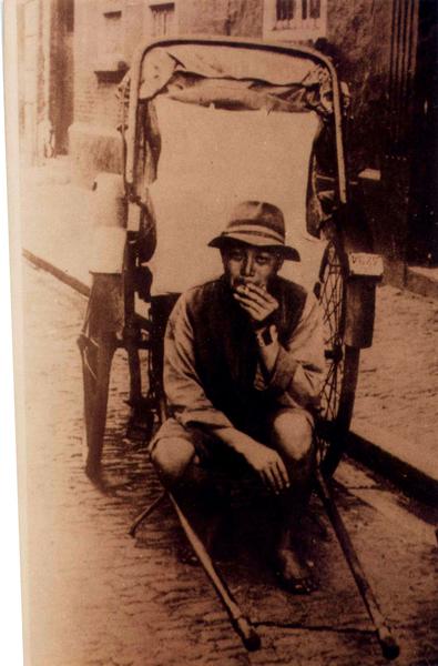 Information data : A rickshaw puller smokes a cigarette during a pause.