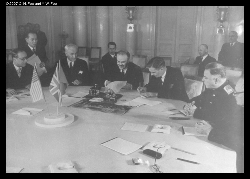 Sitting left to right: Fu Bingchang, Cordell Hull, Molotov, Anthony Eden.