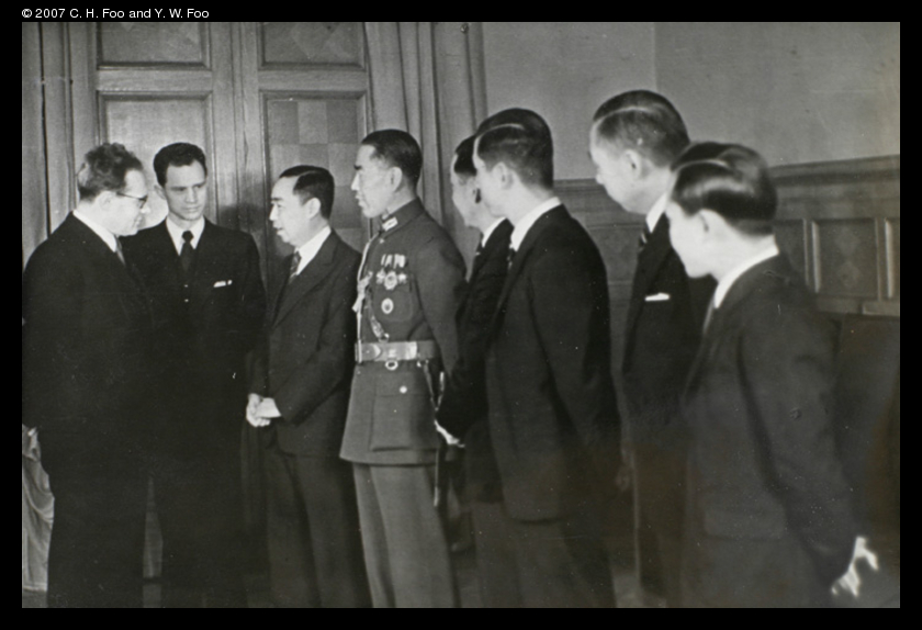 Chen Ting, Counsellor at the Chinese Embassy in Moscow 1940s, is talking in this photo.