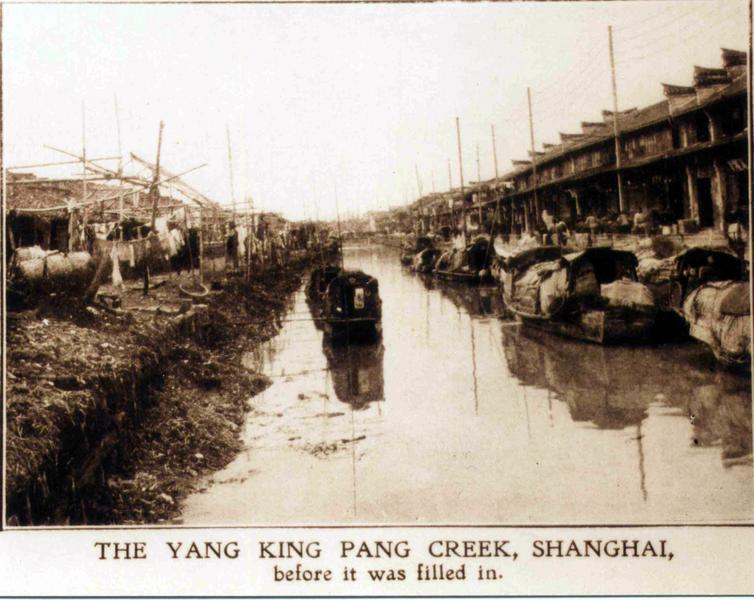 Information data : The Yangjingbang was the name of the creek which separated the International Settlement and the French Concession. It was filled up by decision of the French Municipal Council in May 1915 and renamed Avenue Edward VII. Nowadays it is East Yan'an Road.